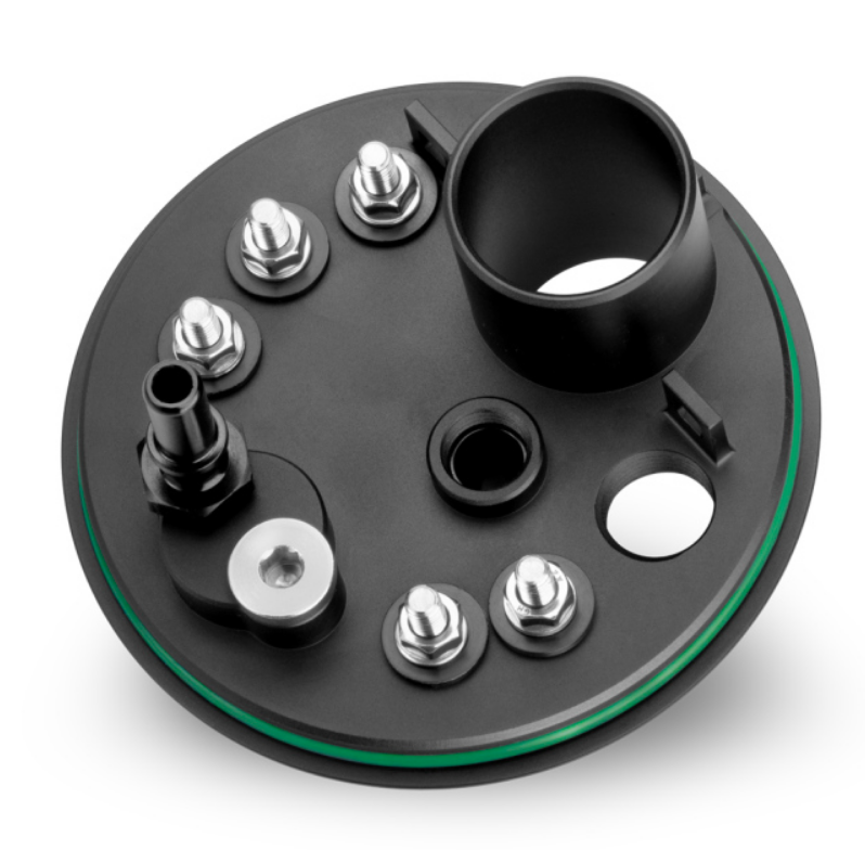 Kitet är främst utformat för användning med en eftermarknadsbränslepump. För att stödja framtida uppgraderingar eller anpassade lösningar med dubbla pumpar är locket utrustat med en extra 1/4 BSPP-port (används inte i en enpumpsinstallation) tillsammans med en extra elektrisk kontakt, vilket gör det möjligt att lägga till en andra bränslepump.